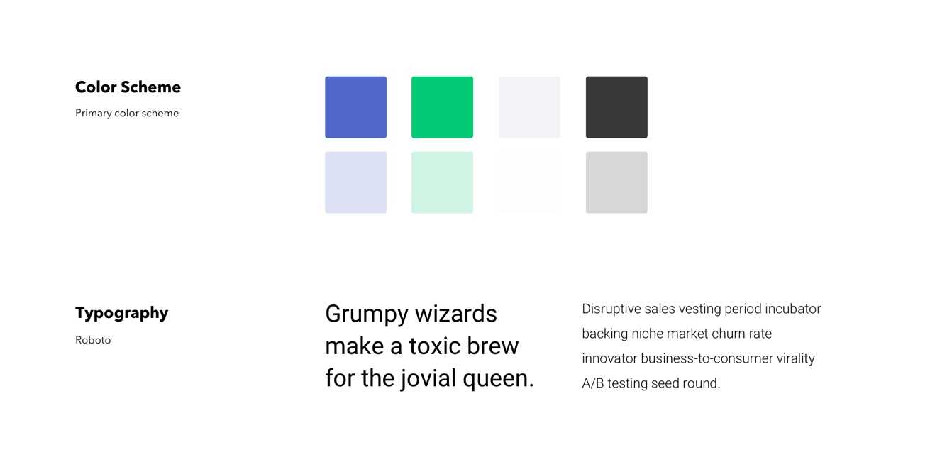 In order to pick up a color scheme, I created more options and tested then across the team and a small selection of potential users. As the opinions were spilled between 2 options, so the final result is a combination of them. For fonts, we decided on a classic option, Roboto, for it’s known qualities on readability on the web and the Android app. For the iOS app, we will be using the San Francisco font in order to make it feel natural and save some space on the app size.